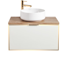 Szafka biała z blatem dąb Sanitti Delta 80 front lustro złote
