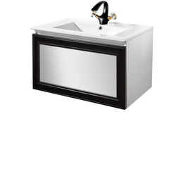 Szafka z umywalką 70 cm Beta czarno biała z frontem lustrzanym