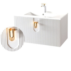 Szafka łazienkowa biała z blatem Sanitti Stripes 80 uchwyt złoty