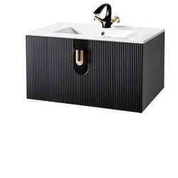 Czarna szafka umywalkowa 80 cm ze złotym uchwytem Sanitti Asso